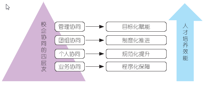 管理协同是协同的最高层次。管理协同主要面向校企合作双方的管理层人员,从合作理念与目标规划、投入与风险控制、运营管理、绩效考核、收益分配等发展战略与制度层面进行协同,从而在更高层面上为校企合作的顺利开展与实施达成共识。由于管理协同建立在前三层协同基础之上,所以校方与企业方将在既定的目标下,建立专业建设和教学过程质量监控机制,健全专业教学质量监控管理制度,完善教学内容、教学评价、实习实训、人才培养方案更新等质量标准建设,通过教学实施、过程监控、质量评价和持续改进,实现专业人才培养目标,最终实现双方的合作目标。